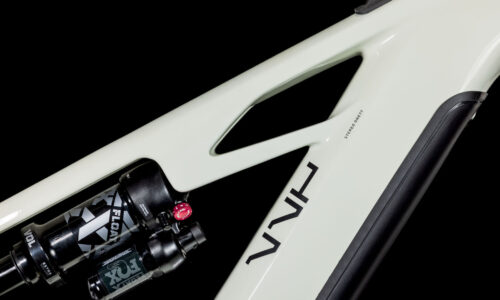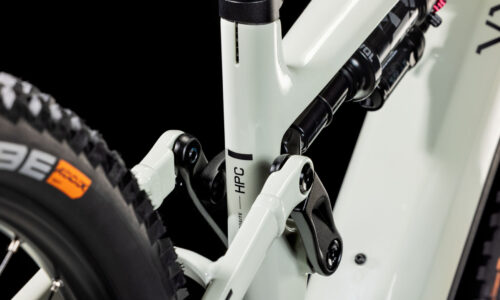 El cuadro de la Cube Stereo Hybrid ONE77 HPC SLX, con recorrido de 170 mm delantero y trasero, y una configuración de ruedas mullet con 29 pulgadas delante y 27,5 pulgadas detrás es todo lo que necesitas para grandes días en grandes pistas de montaña. Aunque, igual que en todos los diseños de CUBE, la clave está en los detalles. Por ejemplo, hemos colocado los cables internamente para crear una estética muy orgánica y reducir el mantenimiento, y luego hemos añadido una dirección de ángulo ajustable para que configures el manejo a tu gusto. La batería PowerTube de 800 Wh está alojada discretamente en el tubo diagonal de carbono, justo encima de la transmisión Bosch CX. La puntera UDH del triángulo trasero de aluminio es resistente y está preparada para modificaciones futuras, y además hemos incluido un protector de cadena direct-mount para que sigas avanzando incluso cuando las cosas se ponen difíciles.